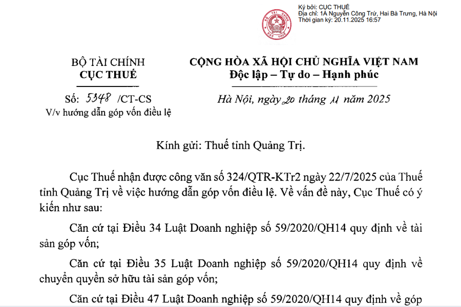 Công văn 5348 về không được hoàn thuế khi chưa góp đủ vốn điều lệ