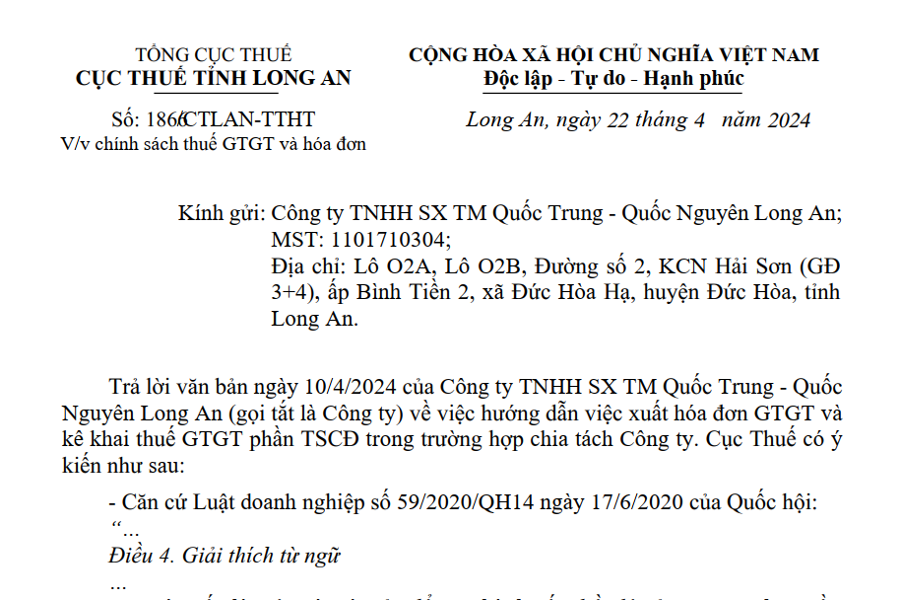 Công văn 1866 về góp vốn bằng tài sản để thành lập doanh nghiệp thì không phải lập hóa đơn