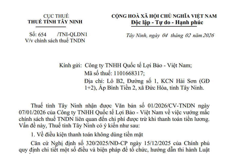 CỤC THUẾ THUẾ TỈNH TÂY NINH Số: 654 /TNI-QLDN1 V/v chính sách thuế TNDN CỘNG HOÀ XÃ HỘI CHỦ NGHĨA VIỆT NAM Độc lập – Tự do – Hạnh phúc...
