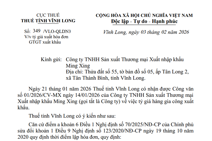 CỤC THUẾ THUẾ TỈNH VĨNH LONG — Số: 349 /VLO-QLDN3 V/v tỷ giá xuất hóa đơn GTGT xuất khẩu CỘNG HÒA XÃ HỘI CHỦ NGHĨA VIỆT NAM Độc lập –...