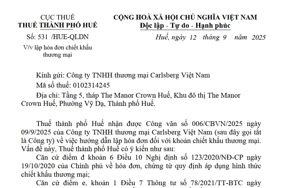 Công văn 531 hướng dẫn lập hóa đơn chiết khấu thương mại