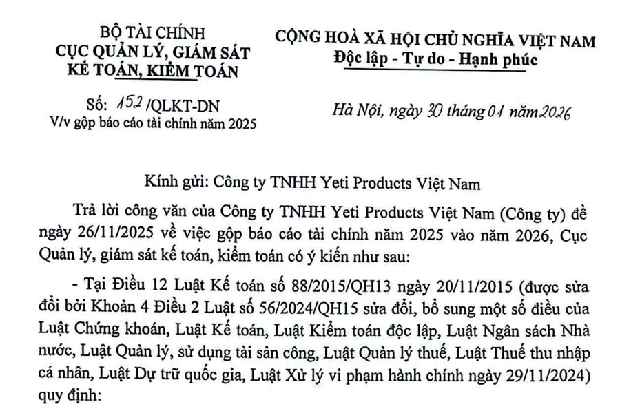 Công văn 152 về gộp báo cáo tài chính năm 2025 theo thông tư 99